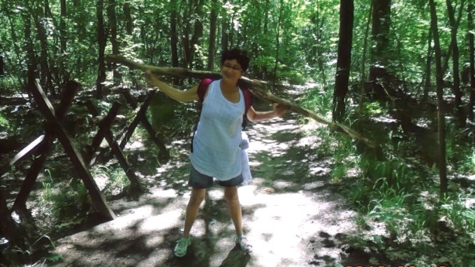 A megpróbáltatásaim azonban nem értek véget. Továbbra is emelkedik az út és a már 35 °C körüli híg levegőben, a rossz tüdőm egyre nehezebben küzd meg az oxigéncsere feladatával. A pulzusom is egyre magasabb. Eléri a határértéket jelentő 160-as ütésszámot, majd a 180-t is. Egyre sűrűbben kell megállni, hogy megvárjam, míg visszaesik. Szerencsére, eleinte van miben gyönyörködni. Fényképezni azonban már nincs erőm, csak a levegőért küzdök. Később, szerencsére lejtmenetbe kapcsolunk, itt már folyamatosabban tudok haladni. Azonban újabb dombon kell átmásznunk. Ezen a részen már csak fától fáig osonok és nekik dőlve várom, hogy a szívverésem csendesedjen. Komolyan rosszul érzem magam és még bőven van hátra az útból. A tervezettnél jóval lassabban haladunk a sok kényszerpihenő okán. A fürdésből semmi sem lesz ma, állapítja meg kis családom. Sajnálom őket és titokban azért imádkozom, hogy csak eljussak a révig. Jó 50-60 méteres szintkülönbséget küzdünk le. Már erősen délutánba hajlik az idő, mire ismét ereszkedni kezd az út. Ezen a részen végre tudok haladni, csak néha kell megállni pihenni. A Club Tihany területe fölött járunk, amikor a telefon kijelzőjére pillantva látom, hogy az utunkba esik egy be nem tervezett geoláda, az Újlaki templomrom. Jó ok a megállásra, kis pihenésre.