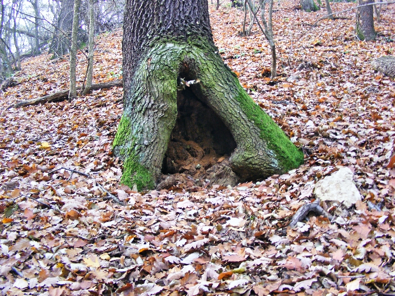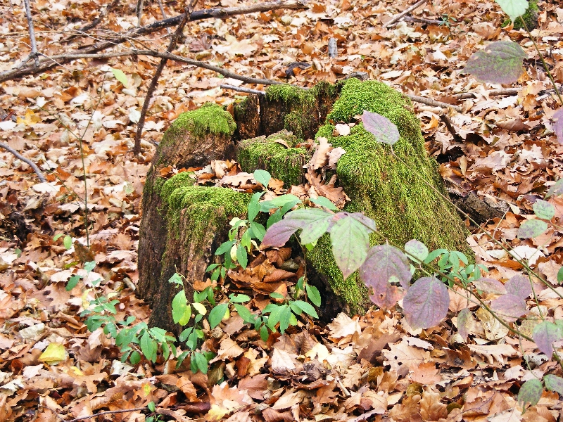 Nagyon lelkesek és máris követelik, hogy keressünk még! Szerencsére a közelben van még egy láda a GPSGames játszótérről, így azt is megkeressük. Erre a ládára egy törött fa tövében találunk rá. A gyerekek már kicsit áthűltek a novemberi időjárásban, ezért elindulunk Budaörs felé, a buszhoz. Természetesen még további ládákat akarnak felkutatni, nagyon megtetszett nekik a dolog. A környező dobozokat már mind begyűjtöttük, így nincs további kínálat, de megegyezünk, hogy majd máskor folytatjuk. Az úton előttünk feltűnik egy érdekes formájú facsonk, ami messziről úgy néz ki, mintha egy hatalmas tyúk ülne egy fán.