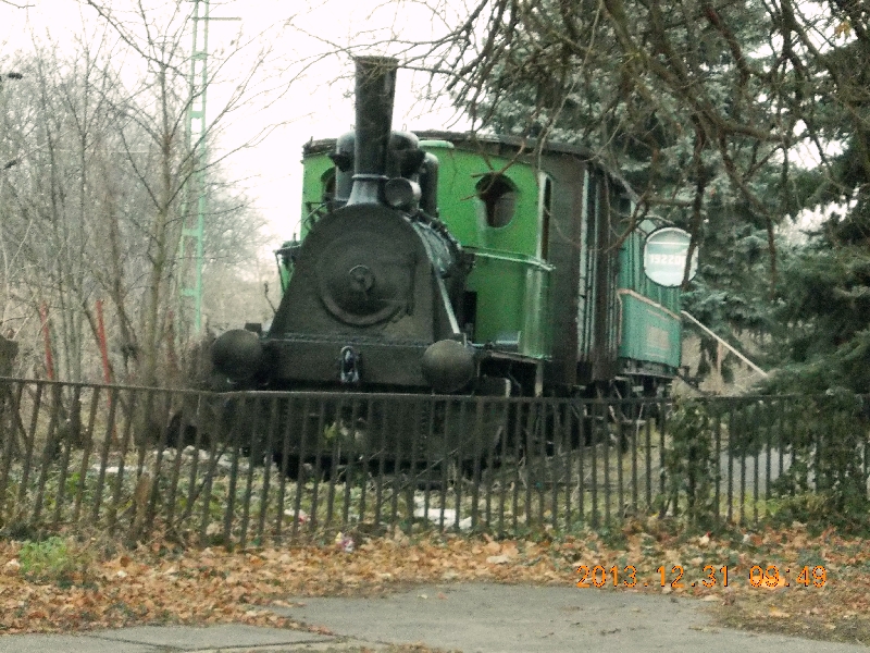 Mivel már délfelé jár az idő, úgy döntünk, hogy ideje ebédelni. Jövetben láttunk egy szimpatikus Pizzériát, visszamegyünk oda. Azonban a pultos hölgy közli, hogy a konyha nem üzemel, mert Szilveszter van. Csak inni lehet. Ilyet meg ki látott!? Nálunk a pizzériák Szilveszterkor extra bevételt termelnek, mert a sok bulizó nem győzi rendelni a pizzákat. Itt meg nem üzemel a konyha! Érdekes egy hely ez a Nagykanizsa! Mára kicsit elmegy a kedvünk a további ládázástól és Nagykanizsától, pedig van még pár láda itt. Úgy döntünk, hogy inkább “nagykörön” megyünk haza és a Szombathely-Győr útvonalat választjuk Budapestig a Balaton-part helyett. Jövetben, világosban úgy is láttuk már a Balatont, a sötétben meg érdekesebb lesz a nagyobb városok tűzijátékait nézni. Visszaindulunk a vasútállomásra. A Vasúti parkban azért megállunk, hogy megkeressük a ládikát. Nem sok időnk van a vonat indulásáig, de ez a láda kicsit trükkös rejtésű, nem adja meg gyorsan magát. Körülbelül sejtem, mit kell keresni, de sehogy sincs meg. A vonatunk rövidesen indul, ezért felhagyunk a kutatással. Már a kiállított járműveket sincs idő fényképezni, menni kell. Mivel újabb ládát nem találtunk, ezért úgy döntünk, hogy az előzőre sem kérünk jelszó nélküli elbírálást, csak egy egyéb logot írunk. Aztán egyszer visszajövünk és akkor, remélhetőleg nagyobb szerencsével, begyűjtjük a többi ládát is. A felemásra sikerült ládázás ellenére eldöntjük, hogy ezentúl a Szilvesztereket, ha lehet, ládázással fogjuk tölteni. Ez az Újévi fogadalmunk!