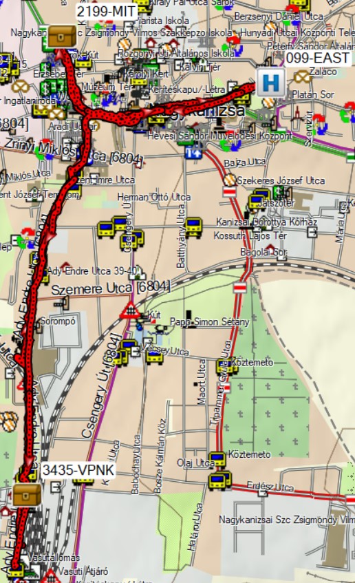 Bejárt útvonal: Nagykanizsa vá. – jelöletlen út –