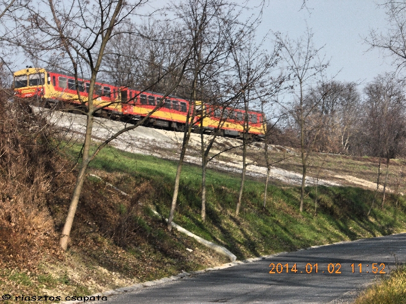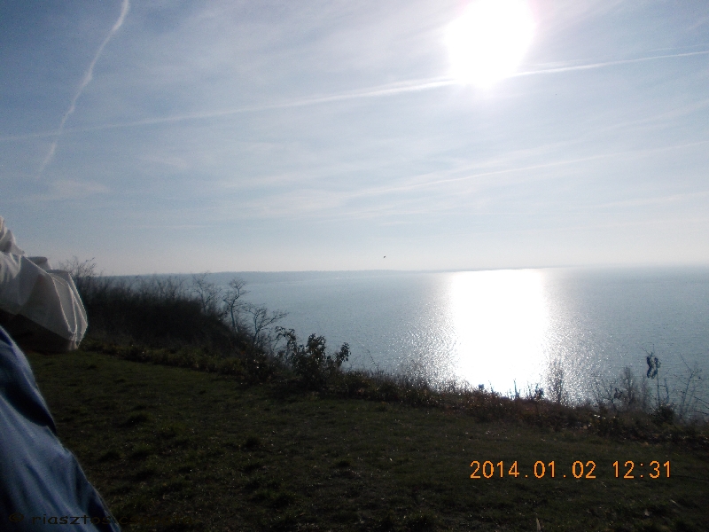 Némi pihenés után csendesen felszedelőzködünk és indulunk tovább. A párafüggöny annyira elvékonyodott már, hogy a távolban a Fűzfői-öböl is látszik, bár halványan. Valahol alattunk a vasút az alagútban fut, mi fölötte ballagunk. Jókedvünk, ha nem is tér vissza, de bánatunk enyhül a szép környezetben. Miután ismét keresztezzük a vasutat, az üdülők kerítése mellett haladunk tovább. Balról fenyők sorakoznak, most a télben is zölden, kissé felidézve az elmúlt Karácsony emlékét. Az újonnan elnevezett Csittényhegy (lánykori nevén Balatonkenese-Üdülőtelep) megállóhelynél térünk vissza a vasút jobb oldalára. Újabb település, Balatonkenese! Itt bemegyünk egészen a 71-es út mellé. Szerencsére most itt is gyér a forgalom, bár a Magaspart csendje után ez is óriási hangzavarnak tűnik. A következő vasúti átjáró után felfedezünk egy élelmiszerboltot, ami nyitva van. Sajnos az ásványvízen kívül csak csokit tudunk venni, mert télre szinte kiürítették a boltot. A kevéske, előre rendelt árut meg már elvitték a helyiek. Szerencsére van még szendvicsünk, éhen nem halunk. A nyárról maradt, kőkemény Sport szeletet meg csak elmajszoljuk valahogy! Kalória kiegészítésnek jó lesz! Házak között haladva vágjuk le a 71-es út kanyarulatát, majd újra azon megyünk tovább. A vasút itt párhuzamosan fut az úttal. Jön is szembe egy “Csörgős” szerelvény, a tapolcai gyors. Korábbi vasútfotós énem nem bír ellenállni, lefényképezem. Jó lesz a gyűjteménybe! Nemsokára aztán jobbra kanyarodva mászni kezdünk vissza a Magaspart itt folytatódó löszfalán. A Tátorján-tanösvényt követjük. Mint megtudjuk a Tátorján, a Dunántúlon egyedül itt tenyésző, ritka növénykülönlegesség, melynek gyökere a tatárjárás idejében, a tatárok elől bujkáló lakosság számára kenyérként is szolgált. A temető mellett elhaladva, némi kapaszkodás után elérjük a kilátót. A kora délutáni napsütés itt már több embert kicsalt. Kutyát és gyereket futtatókkal találkozunk. A kilátóból készítek néhány fényképet, majd a csípős hidegben lemegyünk a ládáért, mely a közeli erdősávban vár ránk.