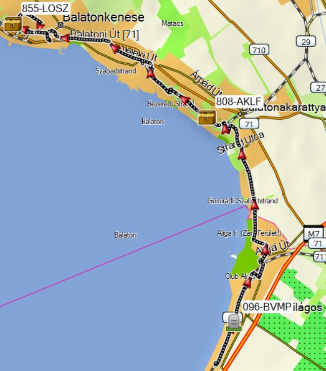 Bejárt útvonal: Balatonvilágos vm. – jelöletlen út –