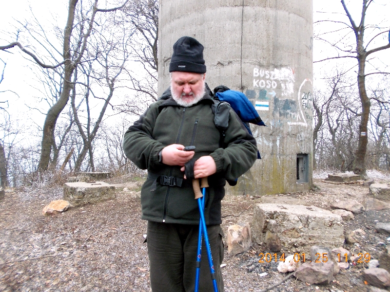 A tornyot az erre járók kilátóként használják. A Turista Magazinban olvastam, hogy hivatalosan is át fogják alakítani kilátónak. Úgy döntünk, hogy nem mászunk fel a belső létrán. Elég nekünk ez a 652 m tengerszint feletti magasság. Így is úgy érezzük, illetve inkább csak én érzem, mintha a Csomolungmát másztam volna meg. Egyébként a párás levegőben, most nem hiszem, hogy messzire ellátnánk. Majd, ha legközelebb erre járunk, felmászunk, hátha addigra elkészül a kilátó. Miután levegőhöz jutottam, megkeressük a ládát. Könnyű találat. Elhelyezzük benne a Ducati TB-t. Persze, ezért volt ilyen nehéz feljönni! Hiszen egy motorkerékpárt hoztam fel ahelyett, hogy ráülve felmotoroztam volna. ![]()