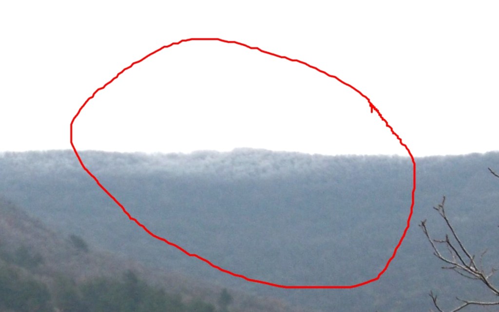 Miután elfutottak, én folytatom fától fáig tartó lopakodásomat a hegytetőre. Talán 100 métert sem haladunk, mikor az imént elfutott csapat eleje már szembe jön. Félreugrunk és kérdezem: -Hová ilyen sietve? Mire a válasz: Lent felejtettük a kajakot! Na, legalább humoruk van! Még jó, hogy azt nem hozták magukkal. Miután minden elcsendesedik, mi is lassan a csúcs közelébe jutunk. Itt megoldódik a rejtély, amire lent felfigyeltünk. Az erdőben egy nagyobb területű irtás található, ahol szabadabban mozoghat a párás levegő és minden csupa zúzmara. Ez látszik lentről fehér foltként. Úgy látszik egy hegynek is lehet “tisztes őszes halántéka”, gondolom. Dalolni, sőt dúdolni sincs most erőm, aminek Vé roppant mód örül.