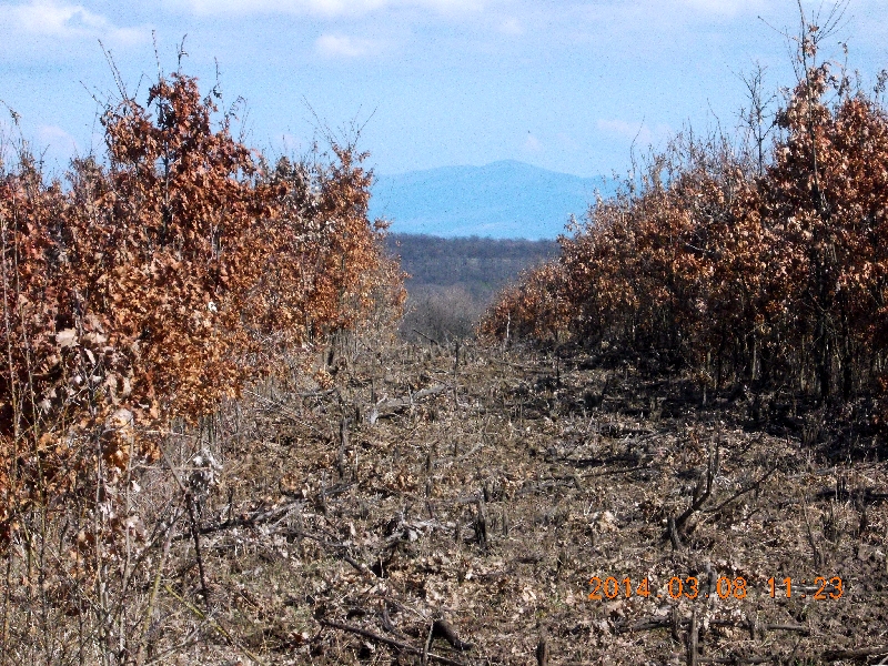 Az út mellett húzódó sáros szántóföld tele van patanyomokkal. Miután lemászok, indulunk tovább. Nemsokára befordulunk egy erdei útra, ami egyre keskenyedik, végül ösvénnyé szelídül. Később ez is bizonytalanná válik és el is fogy. Csak az iránytű után megyünk. Szerencsére az erdő alja tiszta, könnyen járható. Előttünk egyszer csak feltűnik egy komolyabb lejtő. Napsütötte tetején leülünk kicsit pihenni és az ébredő erdőt csodálni. A talaj olyan meleg, hogy simán üldögélhetünk a sarjadó fűben, melynek harsogó zöldje, üdítő a szemnek. Itt-ott egy-egy bátrabb virág is kidugja már a fejét. Az ágakon a levélrügyek duzzadtak, néhányuk már ki is pattant. Néha elzúg egy-egy bogár, ébredeznek ők is. A madarak is rákezdtek a területjelző énekükre. A civilizáció messze, embertől származó zaj sehol. Olyan ritka ez az élmény, hogy egész nap itt tudnék ülni és élvezni az ébredő természetet. De még hosszú út van előttünk, indulni kell. Idáig az emelkedőkön együtt szenvedtünk Zsuzsával. Neki az erőnlét, nekem az oxigén hiányzott. Most fordult a kocka. A meredek lejtőn Vé küzd, mert a lába nehezen viseli ezt a fajta szintkülönbséget. A talaj meg-megcsúszik a lábunk alatt és olyan párákat lehel, amilyet csal tavasszal bocsát ki magából a föld. Nagyon élvezzük ezt a tavasz-illatot. Lassanként mögöttünk marad a dombhát, valami útfélére érkezünk. A térképen látom, hogy rövidesen megint erdőgazdasági úton mehetünk.