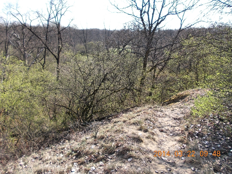Nagyon tetszik ez a környezetbe illő megoldás. Egyébként ki gondolta volna, hogy ekkora “homokvárat” alkotott itt a természet. Növényzet nélkül tényleg alkalmas őrhelynek, mert az egész környéket be lehetett róla látni. Mi azonban inkább a növényzetben gyönyörködünk. A füvön kívül már az ágyhegyek is zöldülnek. Néhány fán a hatalmasra duzzadt virágrügyek, ma-holnap megpattannak. Bármerre nézünk, a zöld dominál. Ez pedig oly simogató a szemnek. Valami különös nyugalom árad ebből a helyből.