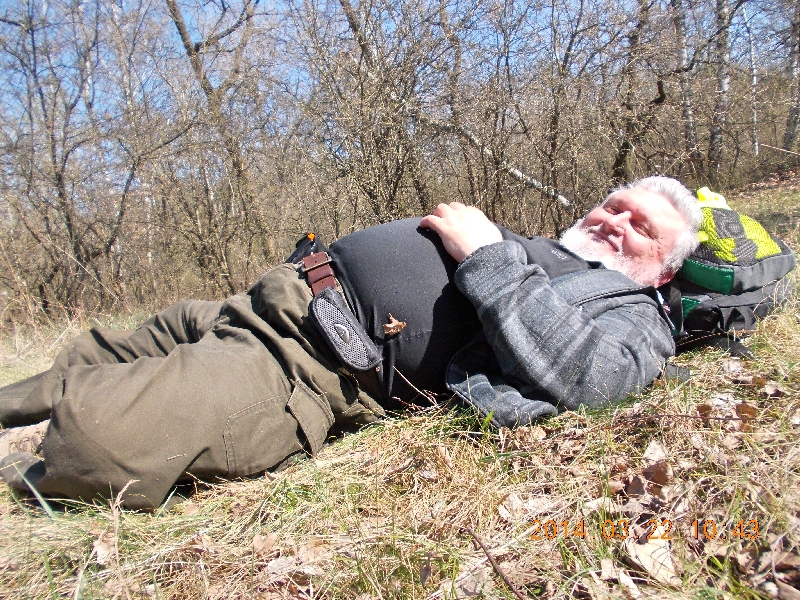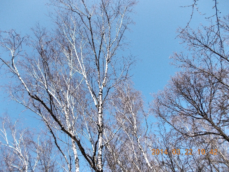 Logolunk, majd elindulunk a kijárat felé. A nap gyönyörűen és főleg melegen süt. A kabátok már rég a hátizsákon lógnak. Sajnos reggel még szükségünk volt rá, most meg cipelhetjük egész nap. Pad híján a felmelegedett földre telepszünk le, hogy megegyük a szendvicseinket. Annyira jó itt, hogy nem is akaródzik tovább állni. Leheveredünk és bámuljuk a tiszta kék eget. Jó kis magassági szél lehet, mert a fölöttünk átrepülő repülőgép kondenzcsíkja pillanatok alatt eltűnik. A kék éghez remekül passzolnak a nyírek fehér törzsei.