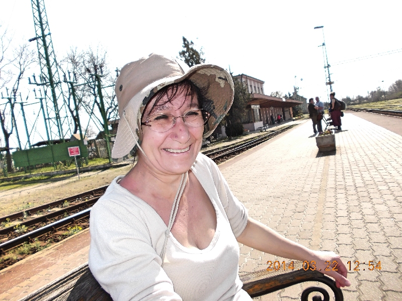 Felcihelődök én is. Még egyszer körbejáratjuk a szemünk a tájon és megindulunk a kapu felé. Ide tényleg megérte eljönni! Visszafelé azon az úton megyünk, amelyen jöttünk. A vasútállomásra érve már határozottan megerősödött a szél, itt talajszinten is. Vé-nek fázik a feje, odaadom a kalapom. Mivel neki nem tetszik a terepszínű mintázat, kifordítva veszi fel. A szél azonban huncut legény, lekapja a fejéről. Szerencsére nem kell sokáig kergetnem, visszahozom. Vé rögzíti az álla alatt, így már nem viszi el a szél. Közben rengeteget nevetünk.