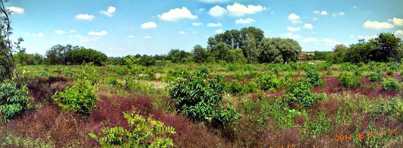 A vasútállomáson találkozunk Zsuzsával, aki a másik irányból érkezik. Először egy Gyömrő melletti ládát keresünk fel, mely régóta beteg. Alapból beteg ládát nem keres az ember, de mivel Gyömrőn oly kevés a láda, teszünk egy kísérletet. Egyébként is, mi elsősorban a látnivalóért megyünk egy-egy helyre, a láda megtalálása csak hab a tortán. Afféle jutalom a bennünk lakó gyermeknek. Mivel, a már korábban keresők logjait is jóváhagyta a rejtő, hátha nekünk is szerencsénk lesz! Ha nem, majd egyszer eljövünk akkor, ha már meggyógyult. Mondjuk erre nem sok esély látszik, mert a láda nagyon hosszú ideje beteg, de történnek még csodák! Egyébként nem igazán értem a láda elnevezését. Ugyanis a látnivaló egy Gyömrő külterületén lévő, a római korban épült kőhíd. Ezt kár volt “Gyömrő” elnevezéssel illetni, mert ebből a névből egy, a város nevezetességeit bemutató ládára gondol a kesser. Mindegy. Az állomástól a turistajelzésen indulunk el. Jó meleg lesz ma is, mint az elmúlt napokban volt, ezért a lányok meglehetősen szellősen öltözködtek . Egy idő után elhagyjuk a jelzett utat és a város széli kis utcákon érünk ki Gyömrő határába, ahol először cserjésen, majd legelőn át visz az út. A hőmérséklet már közel jár a 30 fokhoz, az égen csak gomolyfelhők bodorodnak, amik rövidesen szét is esnek. Igazi nyári idő van, pedig csak nemrég kezdődött a meteorológiai nyár. Beszélgetés közben annyira elmélyedünk a témában, hogy néha túl is megyünk egy-egy fordulón, úgy kell visszatérni a helyes útra. Megérkezünk a láda helyéhez, de csak hatalmas dzsindzsa fogad. A lányok rögtön visítva tiltakoznak, hogy ők ugyan be nem mennek sortban a gazosba! Én szerencsére hosszú nadrágban jöttem. Bemegyek hát a sűrűjébe, ahol egy faoszlop aljában kellene egy fém táblácskáról leolvasni a jelszót. De az oszlopnak én sem találom nyomát, akárcsak az előttünk keresők. Készítek egy panorámaképet a láda koordinátáin állva, hogy tudjak egy jelszó nélküli megtalálást logolni, majd kikecmergek a bozótból.