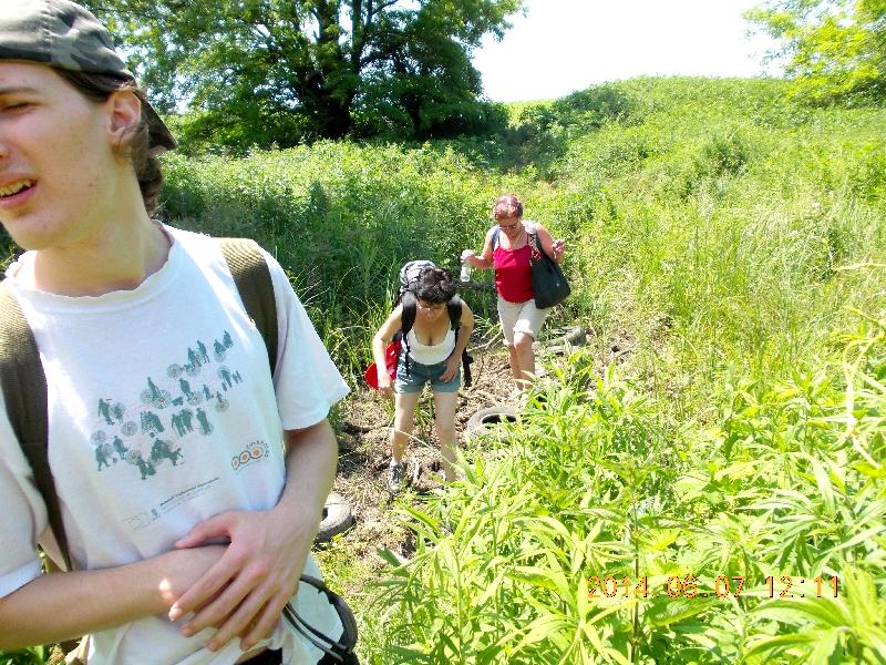 Miután kellően körbeörültük, Nagyapáink stílusában, a szántóföld szélén letelepszünk a fák árnyékába, szalonnázni. Szalonnát ugyan nem hoztunk (kár, mert megsült volna a hátizsákban mostanra), de egy szendvicset benyomunk. Iszunk, pihenünk, pihegünk, majd felkerekedünk és indulunk utolsó célunk, a Tőzeges-tó felé. A korábban említett Szilhát-patak állja utunkat. Híd sehol, csak egy gázló, amire kreatív emberek gumiabroncsokból, deszkákból, meg ki tudja még miből, átjárót eszkábáltak. Én megyek előre. Ha engem megbír, jöhetnek a többiek is. Átkelek, majd nevetve szemlélem a lányok cirkuszi kötéltáncnak is beillő mutatványát a víz fölött.