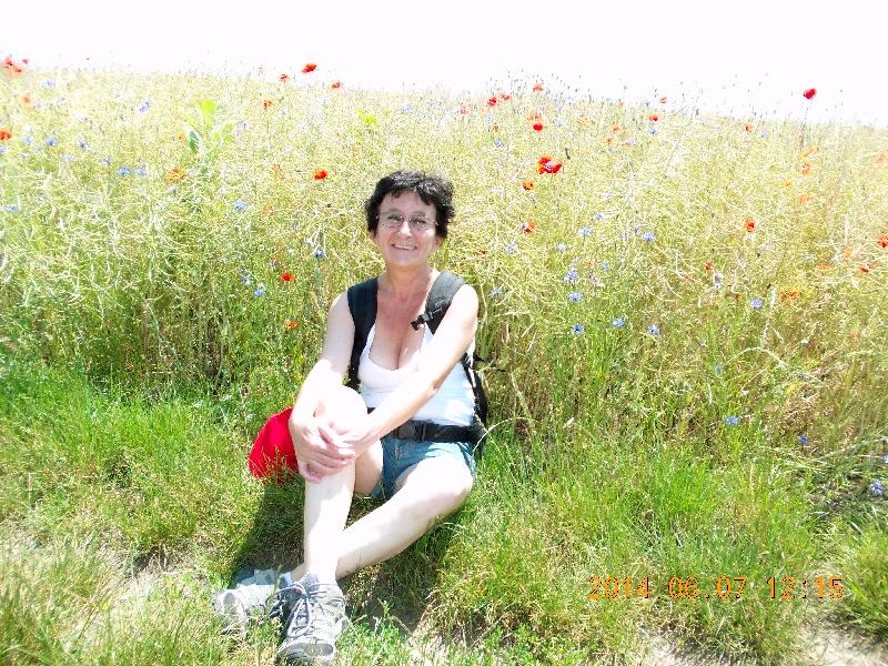 Miután szerencsésen és szárazon átért mindenki egy dűlőúton megyünk Gyömrőre. Mellettünk a repce már rég elvirágzott, de bőven van pipacs. Az előző bejegyzésemből már kiderült, hogy Vé nem mehet úgy el pipacs mellett, hogy ne készüljön róla fénykép, így most is lövök néhányat.