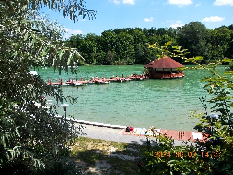 Olyan jó itt, hogy el is nézzük az utat és megyünk tovább. Úgy kell visszafordulni, mert az út elkanyarodik. Egy kellemesen rendezett parkba érünk, mely a másik tó mellett húzódik. Ez a tó ad otthont a Gyömrői Tófürdőnek. A tavon egy kis körpavilonból mérik az itókát. Tiszta Amerika! A tavon pedig egy általam még nem látott szerkezet, mely vontatással szörfözteti a vállalkozókat. Mint megtudjuk Lakeboard névre hallgat. A tó partján lett elrejtve a Tőzeges-tó nevű láda, de régóta nem találja ezt sem senki. Szerencsére itt van pótjelszó. Miután mi is hiába keresgélünk Zolival, a pótjelszó felé vesszük az irányt. Kiderül, hogy a viszonylag meredek parton kell leereszkedni a jelszó leolvasásához. Már nem nagyon fűlik ilyen tornamutatványhoz a fogunk, végül Zoli vállalja magára a feladatot. Meg is ígérem neki, hogy egy korsó hideg sör lesz a jutalma. A jelszó megvan, belogolok. Egyhangúan úgy határozunk, hogy a tó melletti “Fogadó a Bagolyhoz” nevű műintézményt ki kell tüntetnünk a jelenlétünkkel egy ebéd erejéig. A bejutáshoz azonban kerülnünk kell, mert a bejárat a másik oldalról nyílik. De nagyon elszántak vagyunk és ezt a kihívást is teljesítjük. Letelepszünk. Innen remek látvány nyílik a tóra, a fürdőzőkre és a napozó csajokra.