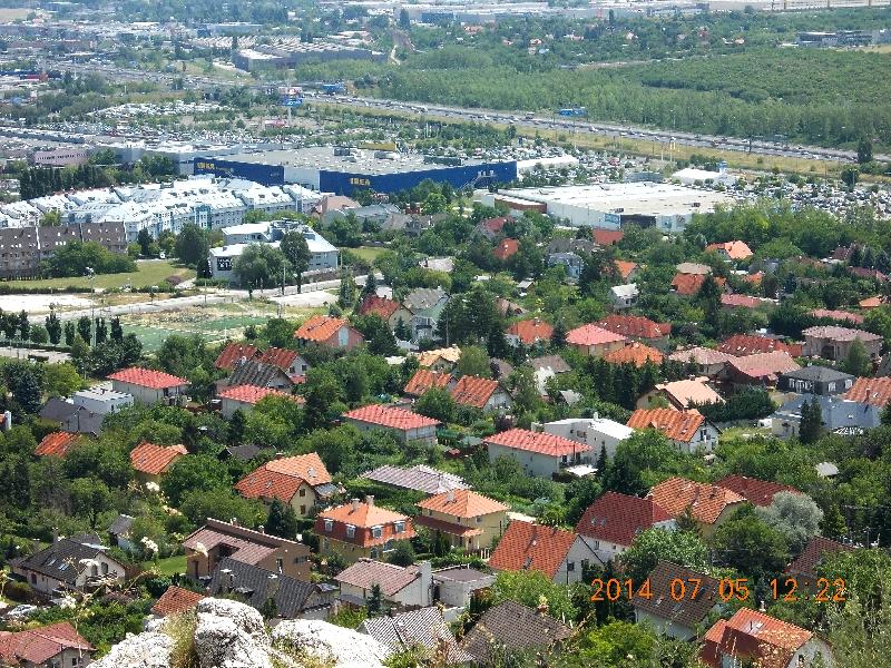 Miután kellően megcsodáltuk a panorámát, egy másik ösvényen térünk vissza Budaörsre. Elindulunk a Főnökasszonyi rendelkezés nyomán a Decathlon felé. Útközben találunk egy kellemesen hűs és árnyas udvarral rendelkező éttermet, ahol alaposan beebédelünk. Innen, szinte szó szerint, legurultunk (elég meredek utca vitt lefelé) túra felszerelést venni.