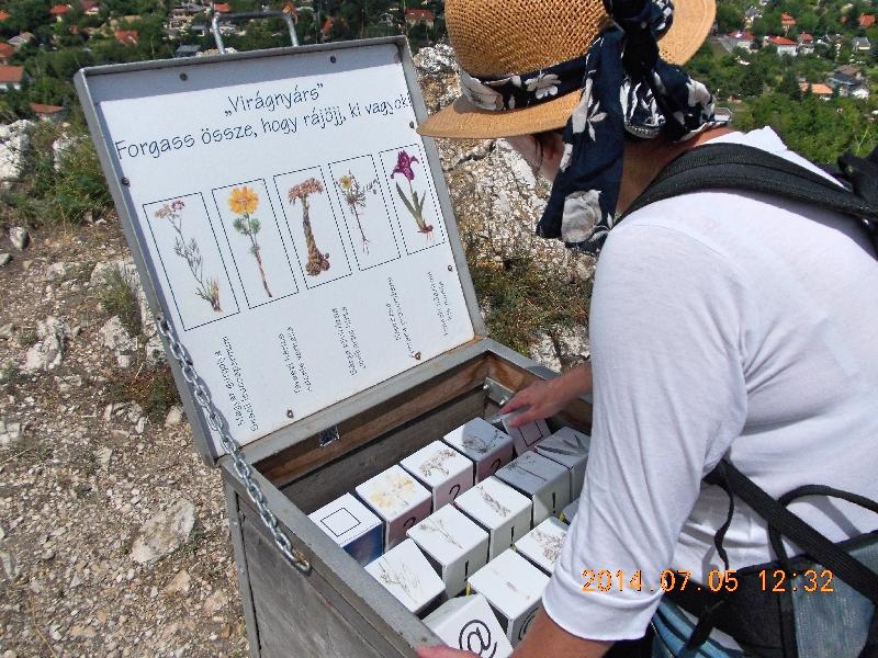 Nagyon ötletes, remélem elterjed másfelé is. Ne meg persze abban is reménykedünk, hogy a “turisták” nem fogják tönkretenni. Vé ismét talál egy ládát, melyben “virágnyárs” van, azaz a terület jellegzetes növényeinek fényképét kell összeforgatni. Ez ugyan inkább gyermekeknek készült, de Vé-ben ott él az is, ezért remekül elvan a dobozzal.