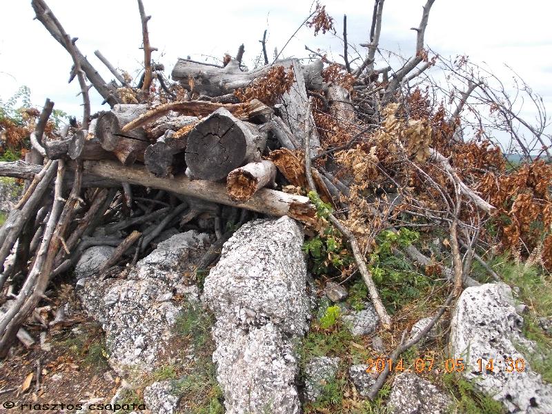 Egy kanyar után ismét “csúcsformába” kerülünk, azaz egy kopár magaslat áll előttünk. Tetején egy hatalmas farakás. Úristen csak nem ezt kell elhányni, hogy megtaláljuk a ládát? Valamelyik előttünk járó kesser nagyon lelkes lehetett az álcázás terén!