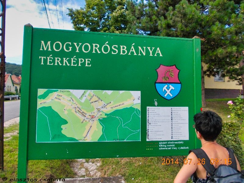 jelzésen baktatunk és érünk be Mogyorósbányára, ami egy kis, rendezett bányászfalu. Még térképe is van a környékről.