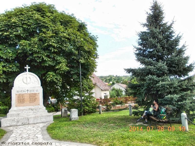 Ahogy olvasom a lakosság sváb eredetű, innen, hát ez a rendezettség! Miután csaptunk egy kört a “City-ben”, úgy döntünk, hogy ideje tízóraizni tovább indulás előtt. A központban, a hősi emlékmű mellett kialakított, fenyőárnyékos pihenőben telepedünk le és fogyasztunk el némi szendvicset.