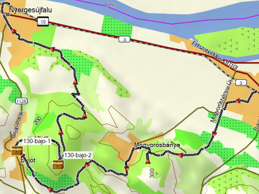 Bejárt útvonal: Tát vmh. – jelöletlen út –