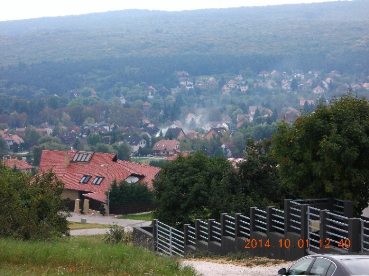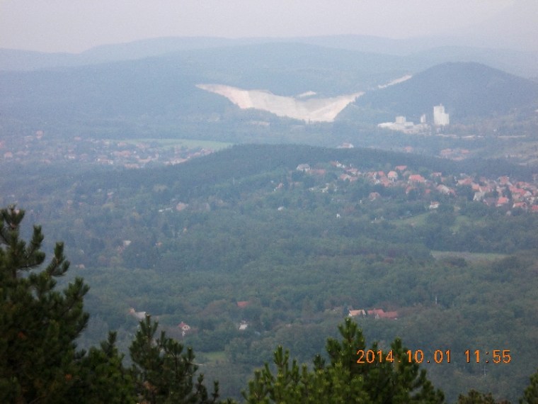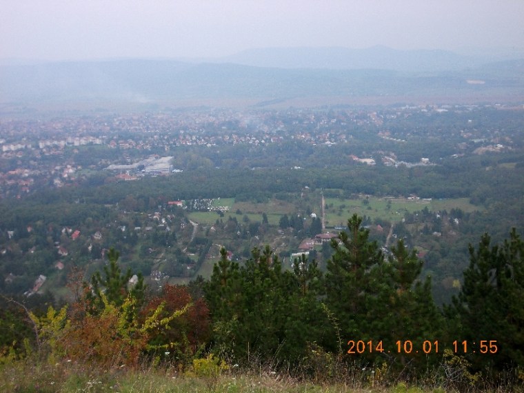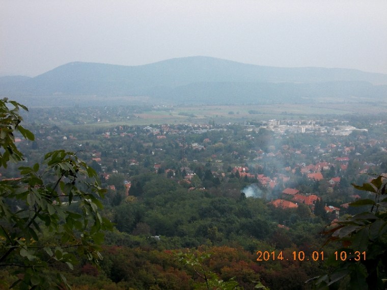 Szemben az ajtóval a növényzeten egy nyílás van, ahonnan rálátás nyílik Solymárra. A párás idő és az avarégetés okán felszálló füst miatt, a távolbalátás korlátozott, de azért sejthető a környező táj körvonala.