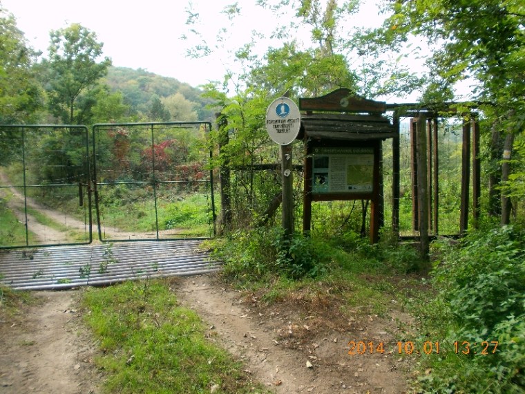 Sajnos, ismét aszfaltút kanyarog a lábaim alatt, de legalább szemügyre veszem a település házait is. Látszanak a német gyökerek. Tiszta, rendezett házakat látok. Keresztezem a városi parkot, majd innen már kifelé tartok a településről. A házak közül kiérve balra fordulok és egy sorompóval lezárt úton már az erdőben ballagok, egyre emelkedő úton. Nagy ellenségem, az emelkedő azonban nem tart sokáig. Rövidesen ráfordulok egy közel szintben vezető útra, mely kanyarjaival a terepi alakzatok vonalát követi. Egyszer csak feltűnik előttem egy tábla, mely első úti célom, az Ördöglyuk-barlang felé mutatja az elágazást. Elindulok a barlang felé. Az út eleinte enyhén, majd egyre jobban lejt. Most még jó, de ezen vissza is kell jönni! – gondolom. Pár száz méter után ott állok a barlang főbejáratát lezáró vasajtó előtt. Szemügyre veszem, de elég nehezen nyithatónak látszik. Természetesen, kísérletet sem teszek arra, hogy bemenjek, mert megfelelő felszerelés híján és egyedül még az Álmoskönyv sem ajánlja egy barlang meglátogatását!