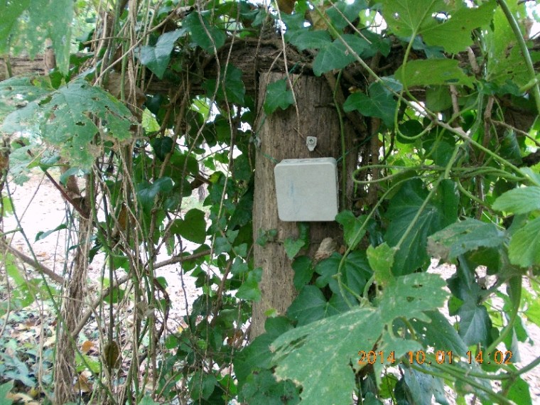 Könnyen megtalálom az elektromos kötődobozt a tó partján található korláton. Viszont a jelszón és egy Kinder-figurán kívül, semmi sincs a dobozban. Úgy látszik ez a rejtek sem túl biztonságos! Lehetne meggyőzőbben álcázni, egy darab kábellel és 240V-os matricával és akkor senki sem gondolná, hogy itt az elektromos dobozban nem birkózógépet talál.