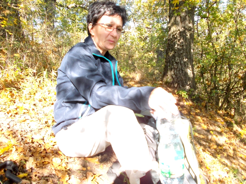 (síút) majd jelöletlen úton indulunk a mozgó láda felkutatására. Szép az erdő és az elhúzódó meleg miatt a fák még alig sárgulnak. Kicsit ősziesebb tájra számítottunk, de csak olyan szeptember eleji még a hangulat. Bármennyire is sietünk, egy remek kilátást nyújtó helyet nem tudunk kihagyni és vetünk néhány pillantást Diósjenőre és a környező térségre. A távolban a párából még a Nógrádi vár is felsejlik. Folyadékpótlás után indulunk is tovább, hogy egy jelzetlen úton felmásszunk első úti célunkhoz.