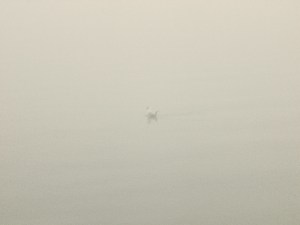 Viszont akkora a köd, hogy kis túlzással, csak onnan tudjuk, hogy a vízparton járunk, hogy halljuk a hullámok locsogását. A távolban felsejlik egy vízi madár sziluettje, de jószerével a fajtáját sem lehet felismerni.