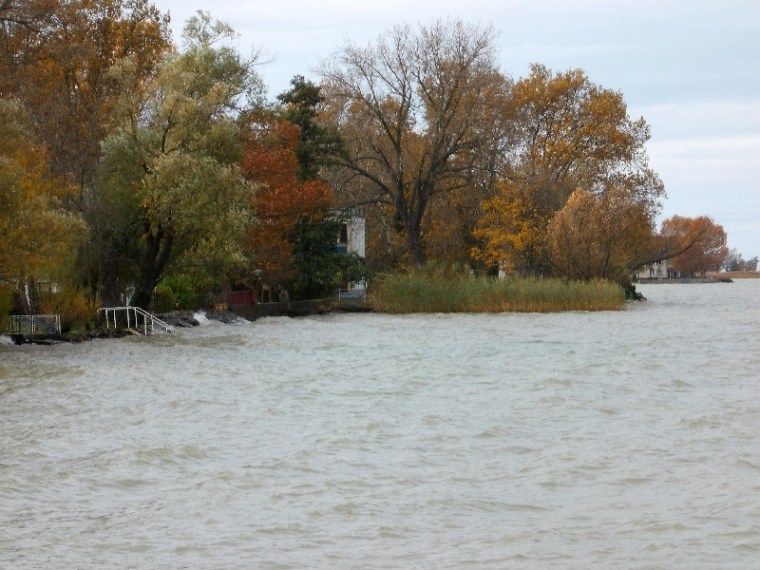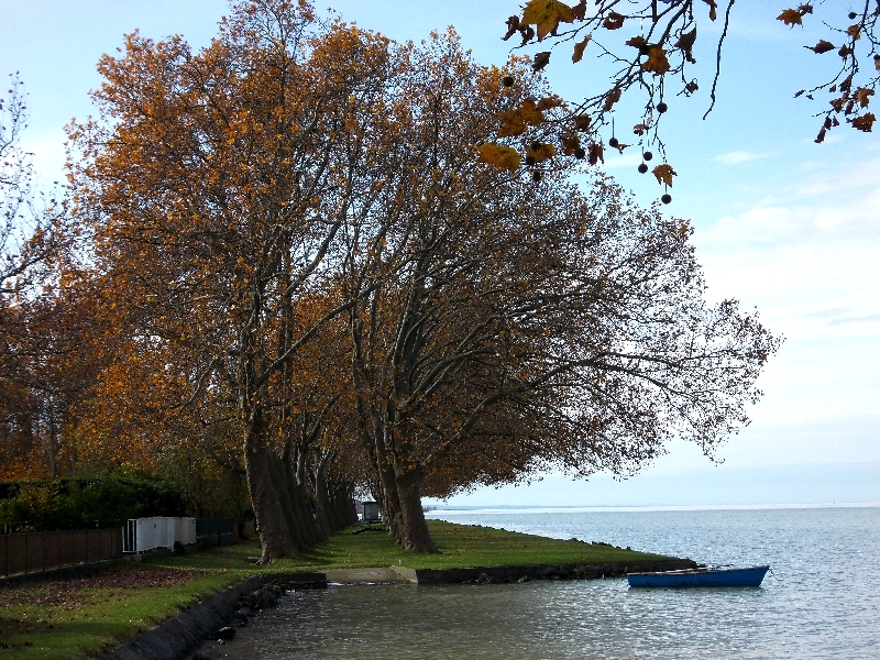 A szabadstrand révén, a víz közelében gyalogolhatunk elég hosszasan. A föveny végén ismét a kerékpárút és a vasúti töltés mellé megyünk ki. Egyre több fa és bokor vette fel őszi ruháját, de az elhúzódó meleg miatt valahogy nem az igazi ez az ősz! Észrevettük, hogy sok fa zölden hullajtja le leveleit a hirtelen hűvösebbre váló időjárás hatására. Ez a klímaváltozás teljesen összezavarja a növényeket (is).