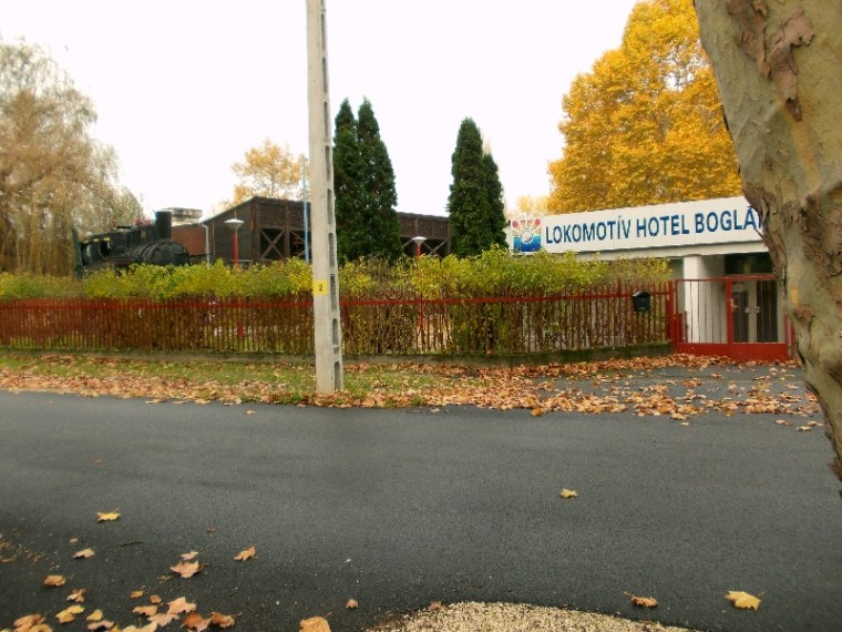 Már Bogláron járunk. A vasutas üdülő elé érünk. Ezt leginkább onnan látni, hogy az udvarán egy “Nyalóka” becenevű gőzös van kiállítva. Régen, ilyen mozdonyok jártak a szárnyvonalakon errefelé is.