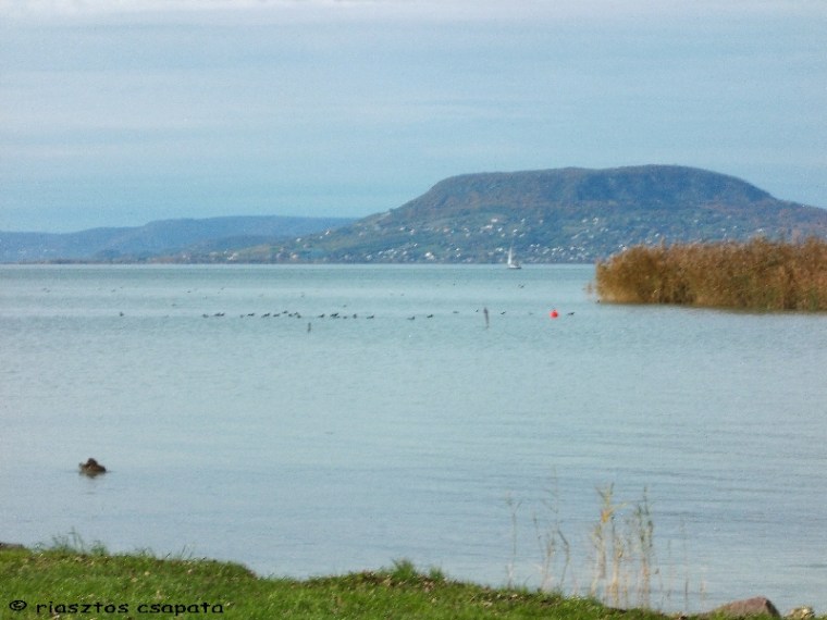 Történetünk a vasútállomástól indul újra, némileg megnyugodva. A víz felé menet útba ejtjük a Balatonboglári Sziget strand geoládáját. A logok alapján egy elég jól elrejtett ládáról van szó. Többen csak segítséggel találják meg. A környező házakban lakók be vannak avatva, figyelni szokták a keresőket és segítenek, ha kell. A koordinátára érve, tényleg nem sok rejtekhely kínálkozik. Akkor gondolkodjunk! Még egyszer körbenézve, egyetlen tárgy akad, amiben elférne egy geoláda. De abban más van. Közelebb megyek, körbenézem és rájövök, hogy itt bizony más is lehet, mint ami első látásra látszik. Valóban, ott “vigyorog” ránk a láda. Nagy az öröm. Nem láttam, hogy figyeltek volna, de lehet, hogy az ablakok mögül, lesett valaki. Legalább láthatta, hogy milyen ügyesek vagyunk! Az ősz végi időjárás hatására a rejtő által kért viráglocsolás elmarad, irány a strand! A láda nevét adó Sziget strandon megállunk egy padnál, hogy megcsodáljuk az Északi-partot, mely végre takarás nélkül mutatkozik meg. A nap is kisütött és mintha a szél is mérséklődne kissé. Vagy csak már megszoktuk. A meteorológia mára esőt jósolt. A radarképet megnézve látszik is, hogy mind a keleti, mind a nyugati medencében esik. Csak itt a középső részen van jó idő. Kesser-isten megint ránk mosolygott! A kacsák valóságos hidat alkotnak a szemben lévő szigetig, mely a strand névadója lehet.