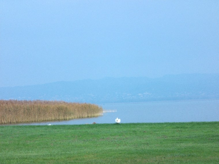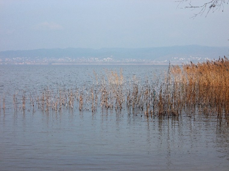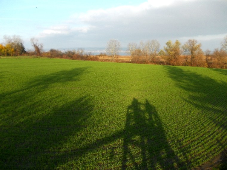 Szembetűnő a változás, ami az elmúlt 1 hónap alatt történt. Amikor elindultunk, bár hatalmas novemberi köd volt, a fák még zöldelltek. Aztán következett egy rövid sárgulási szakasz, de mára a fák, bokrok nagyrészt elvesztették levél-ruhájukat és csupasz ágakkal várják a telet. Álmodnak a fák, ahogy álmodnak a nyaralók is. Kihalt és álmos az egész Balaton-part. Csak a településeken van némi élet, ez is inkább a boltok környékére koncentrálódik. Ez a nekünk való idő! Bár a hagyományos fűtés okozta füst nem tesz jót a kehes tüdőmnek, de kiérve a településekről, már jó a levegő. Balatonkeresztúr térségében közelítjük meg újra a vizet, de ez is inkább nádassal fedett terület, itt-ott egy-egy üresebb vízfelülettel. Ez már itt a Nagy-Berek, illetve az annak az egykori területéből kihasított rész. A szabadstrandon is csak a vízi szárnyasok “napoznak” a reggeli párarétegen áttörni igyekvő napfényben. Lassan felszívódik a párapaplan és halványan látni a Keszthelyi-öböl térségét is.