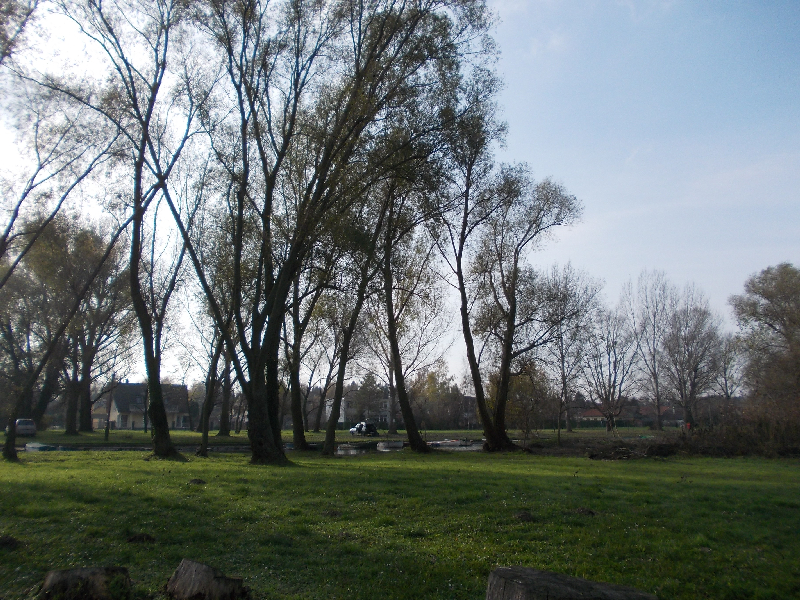 Miután lejöttem, megcélozzuk a vasúti megállóhelyet. Odaérve látjuk, hogy még van egy óránk a vonatig, így sétálunk. A megállóhely közelében nyaranta madarásztáborokat szoktak tartani. Most is sokféle madár van itt, dróthálós ketrecekben. Gondolom, ezek ápolásra szorulnak, ezért vannak ebben a mini állat(madár)kertben. Elsétálunk még a gátról levezető kocsiútig, de a folytatásban ismét csak a sár látszik. Egyébként is érezzük már a mai utat az izmainkban, így a visszafordulás mellett döntünk. Vetünk még egy búcsúpillantást a berekre és a pihenő csónakokra.