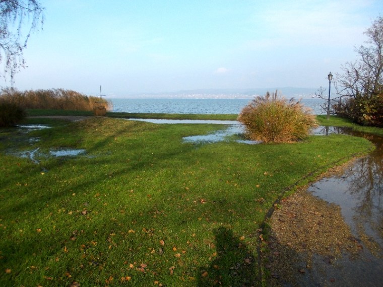 A szabadstrand vége már részben víz alatt áll, illetve a szélén egy vízzel telt árok húzódik, így egy alkalmas helyen visszatérünk mai utunk vezérfonalához, a kerékpárúthoz.
