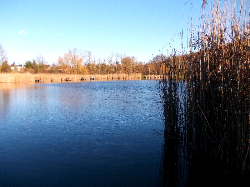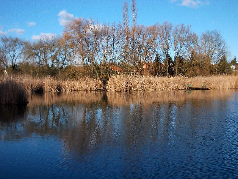 A soproni GySEV pályaudvarra fut be vonatunk. Ahogy kilépünk az állomás épületéből, még az éjszakai hidegfront nyomán itt maradt, metsző szél vág az arcunkba és fújja ki ruházatunkból a vonat melegét. Talán ennek a sokknak köszönhető, hogy elfelejtem elindítani a track rögzítést. Már a Szent Mihály-templom közelében járunk, mikor észbe kapok és pótolom ezt a hiányosságot. Kb. másfél kilométernyi útszakasz ezért hiányzik a track elejéről. (Ezt, a bejegyzés végén lévő térképen más színnel jelöltem.) A Fertőrákosra vezető kerékpárúton megyünk, ahol kerékpárossal nem is találkozunk ezen a hideg, december közepi napon. Szerencsére a szél, az előrejelzésnek megfelelően mérséklődik és ahogy a Nap is magasabbra hág, már kellemesebb a klíma. Kiérve a házak közül, gyümölcsösön keresztül vezet az út. Aztán az erdőt elérve, annak szélén megyünk tovább. Mocsaras terület mellett haladunk, majd előtűnik egy horgász tó.