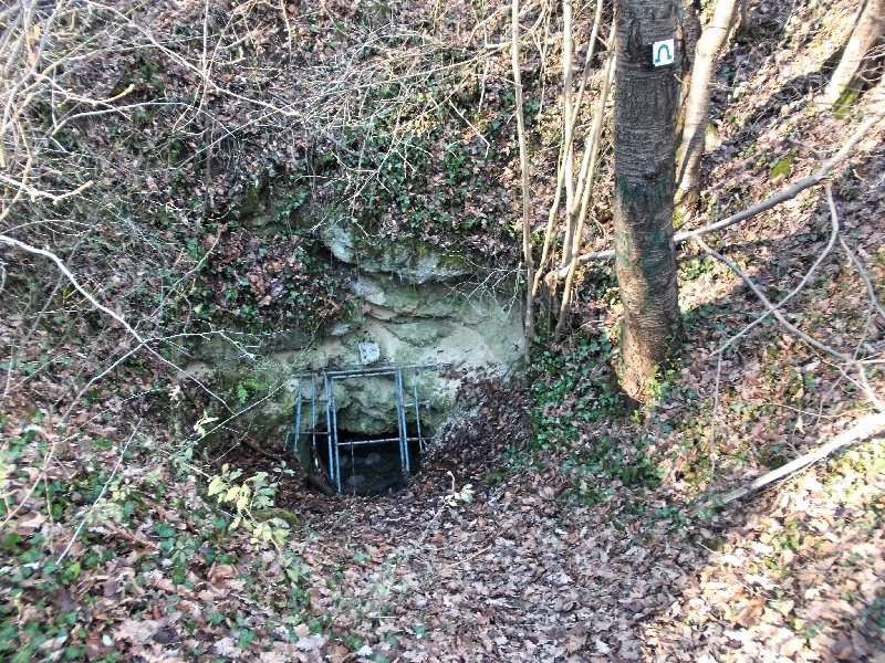 jelzésen indulunk a Zsivány-barlang felé. Útközben látunk egy elhagyott mészégető helyet, majd elérjük a barlangot.