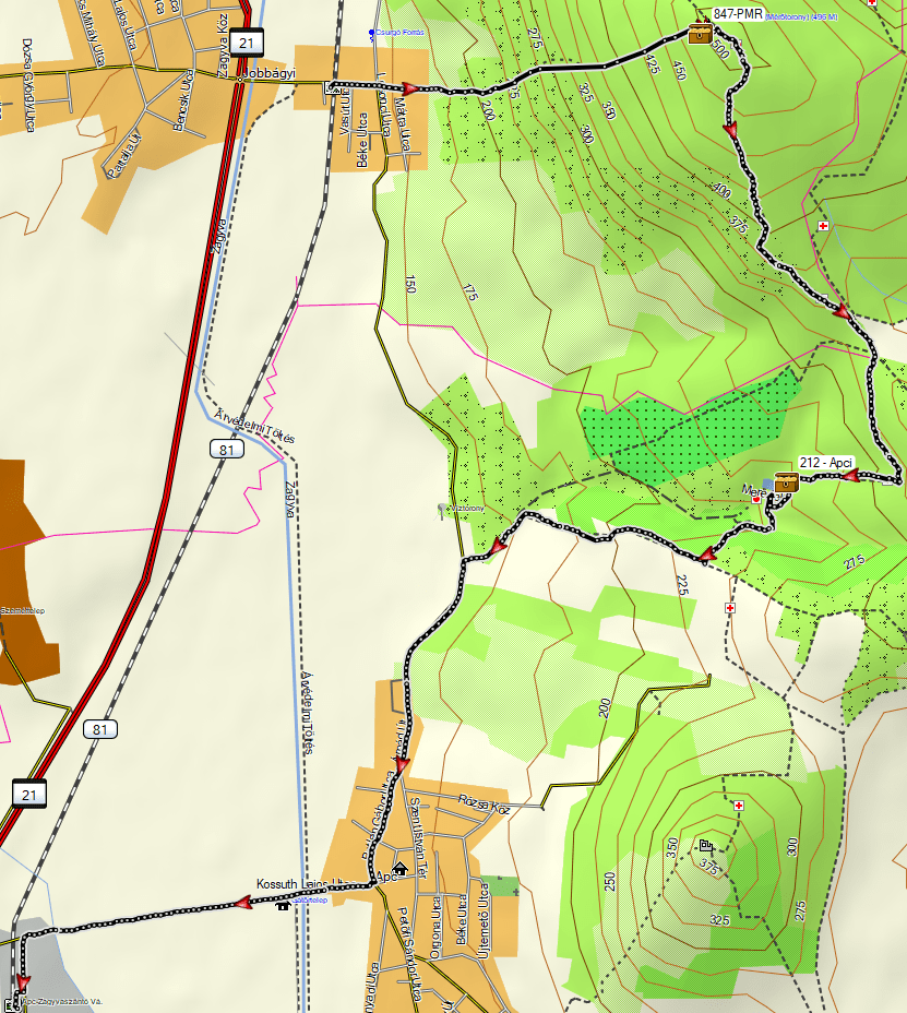 Bejárt útvonal: Jobbágyi vm. – jelöletlen út – GCPMR –