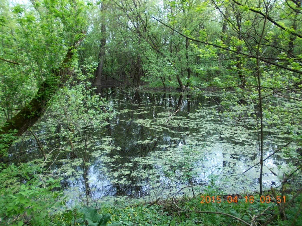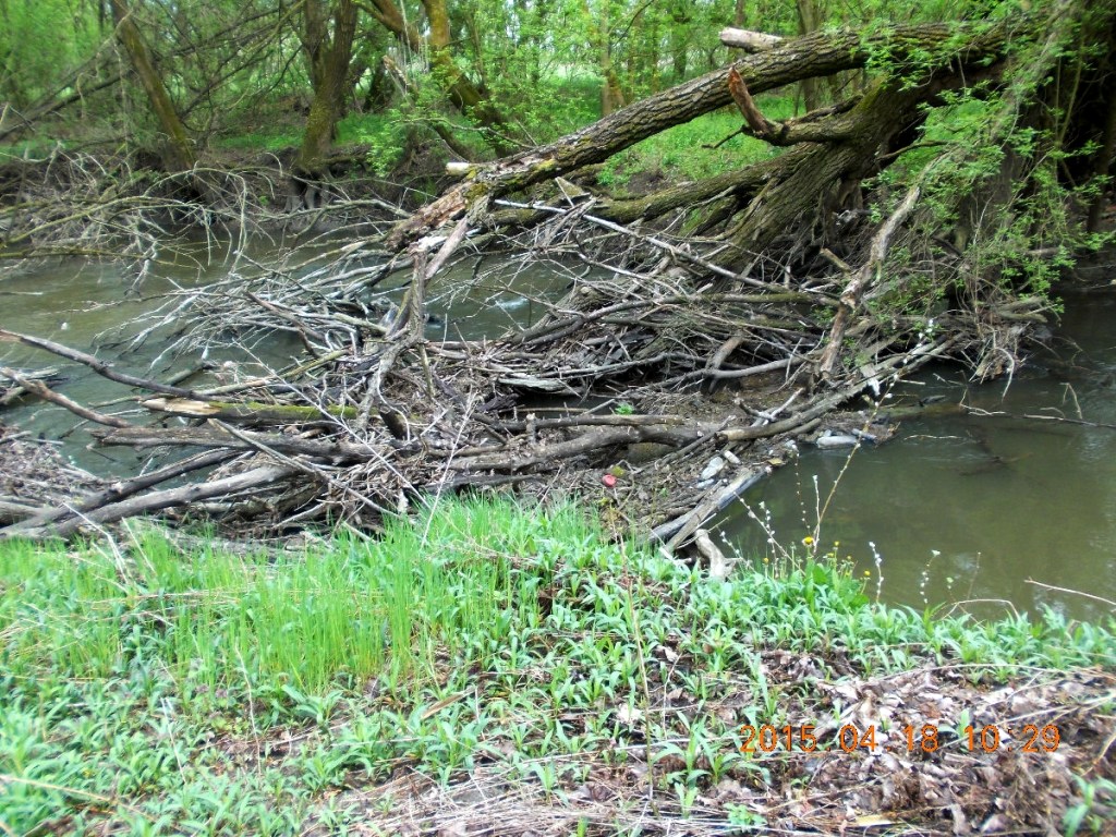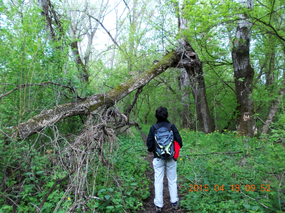 Hát még, ha sütne a Nap! Sajnos ma, az éjszakai front után még nem szakadozott fel a felhőzet. Jó kis eső volt éjjel és vigyázni kell, hogy ne nagyon érjünk a növényzethez, mert valóságos “vízözön” zúdul ránk minden alkalommal. További esőt is jósoltak délutánra, de úgy saccolom, hogy addig megjárjuk az utat. Ballagunk hát a csendes kis ösvényen. A közút zaját már nem halljuk. Körben madarak énekelnek, hiába a fészekrakás ideje van! Kidőlt fákon kelünk át. Nem is gondolná az ember, hogy egy város belterületén járunk. A nálunk szigorúan lekövezett, szinte árnyéktalan Zagyva-partnak kiáltó ellentéte ez a terület. Jobban is tetszik! Meg-megállunk rácsodálkozni egy-egy, a korábbi viharokban megroppant fatörzsre, melyen új élet sarjad. Az elhalt törzset belepi a moha és a rovarok, gombák és más organizmusok megkezdték lebontó munkájukat, hogy pár év múlva az egykori fát alkotó elemek ismét bekerüljenek a természet örök körfogásába. Elég komoly vihar pusztíthatott itt valaha! – állapítjuk meg.