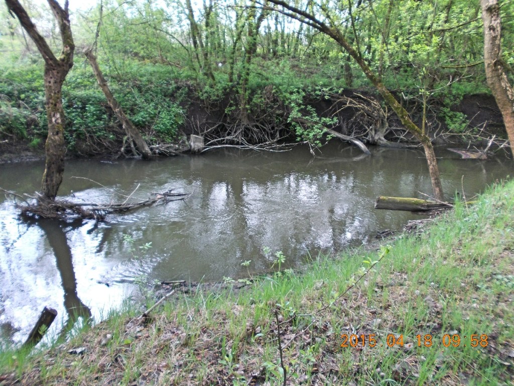 Később egész közel kerülünk a mederhez. A fák alkotta ernyő alatt vadkacsák úszkálnak a part mentén. Természetesen a túlsó part mentén, biztos ami biztos. Próbálom lefényképezni őket, de olyan kevés fény jut ide, hogy sötétek a képek nagyon. Mindenütt fák és ágak dőlnek a vízbe. Nem lehet könnyű azoknak a kajakosoknak, akik végig akarják evezni a Zagyvát. Helyenként járhatatlannak tűnik a vízi út. A látvánnyal azonban nem lehet betelni! Aztán egy egykori civilizált területre érünk. Itt valamikor rendezvényeknek helyet adó, kiépített terület lehetett, melyet azonban felhagytak. Gondolom az “átkosban” hétvégi piknikező terület volt itt. Itt-ott még látszanak a tűzrakóhelyek és sportpályák nyomai, sőt egy egykori WC épület is árválkodik a fák között.