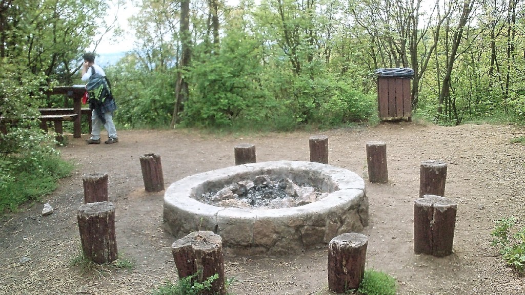 jelzést nemsokára elhagyjuk, hogy a szinte egyenes, szelíden emelkedő úton, egészen a ládáig menjünk. Pontosabban a ládát rejtő erdőig. Ide belépve, az ösvény komolyabb emelkedésbe fog, hogy aztán pár méter után egy jól kiépített tűzrakó-és piknikező helyen meg is álljunk. Lepakolom a hátizsákot és amíg Vé nézelődik, én egy kőkupac alól már húzom is elő a ládát.