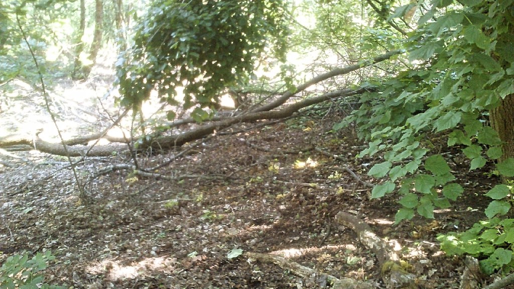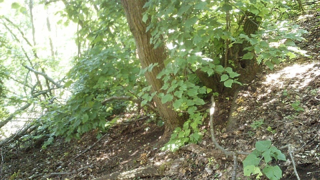 Vé, közben nagyobb körben kutat, megnézve, minden gyanús fát. Végül ismét a női megérzés győzedelmeskedik a technika felett. Egy távolabbi facsoportban megleli a keresett csészét. Ez ugyan egy másik facsoport, de a GPS hibahatáron belül van. Majd otthon a nagyobb képernyőn összehasonlítom a hely ládaoldali és az általam készített fényképét, mert lehet, hogy valaki nem az eredeti rejtekbe rakta vissza a ládát. Persze el is lehet mérve, mert elég nagy a GPS hibahatára jelenleg is (kb. 6 m). Télen, mikor nincs lombozat, valószínűleg jobb eredmény születne. Mindegy, logolunk, visszarejtjük és álcázzuk a ládát, majd visszamászunk a turistaútra. Szerencsére senki sem járt erre, így nem látta ténykedésünket. Kicsit várunk, míg a lábunk remegése, – amit a laza, ferde talajon állás okozott-, csillapodik. Közben a térképen szemügyre vesszük a következő ládáig vezető utat. Érdekes, mennyi nyílegyenes út van benne! Ilyennel eddig nem nagyon találkoztunk.