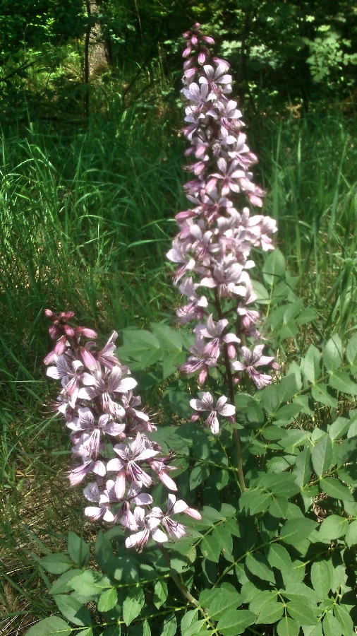 Később egy szép rózsaszínes virágba botlunk. A telefonon lévő virághatározó alapján, Dictamnus (Ezerjófű), a Rutafélék egyetlen magyarországi képviselőjeként azonosítjuk, de lehet, hogy tévedünk. Mindenesetre nagyon szép!