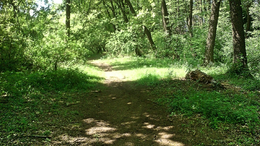 elágazást elérve, jobbra fordulunk és lassú ereszkedésbe fogunk. Kellemes erdei úton haladunk. Aztán a