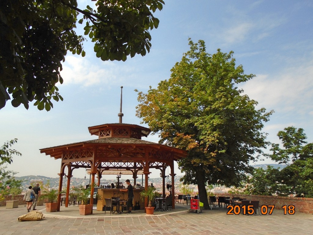 Kisétálunk a Tóth Árpád-sétányra, de azt éppen felújítják, így le van zárva. Visszafordulunk, hogy a következő pontot az Úri utcán át közelítsük meg. Valamivel több, mint 300 méter után, máris a 2. ponton vagyunk. Ez, a sajátosan érdekes nevű, Savanyúleves-bástya. Innen jó kilátás nyílik (nyílna) Budára, de az itt székelő vendéglátóhely majdnem az egészet lefoglalta magának kerthelyiség gyanánt, éppen most pakolnak ki az üzemkezdethez. Azért a lehetőséghez mérten, készítünk egy fényképet.