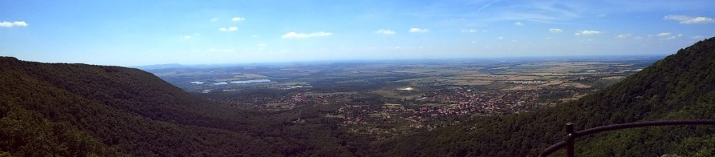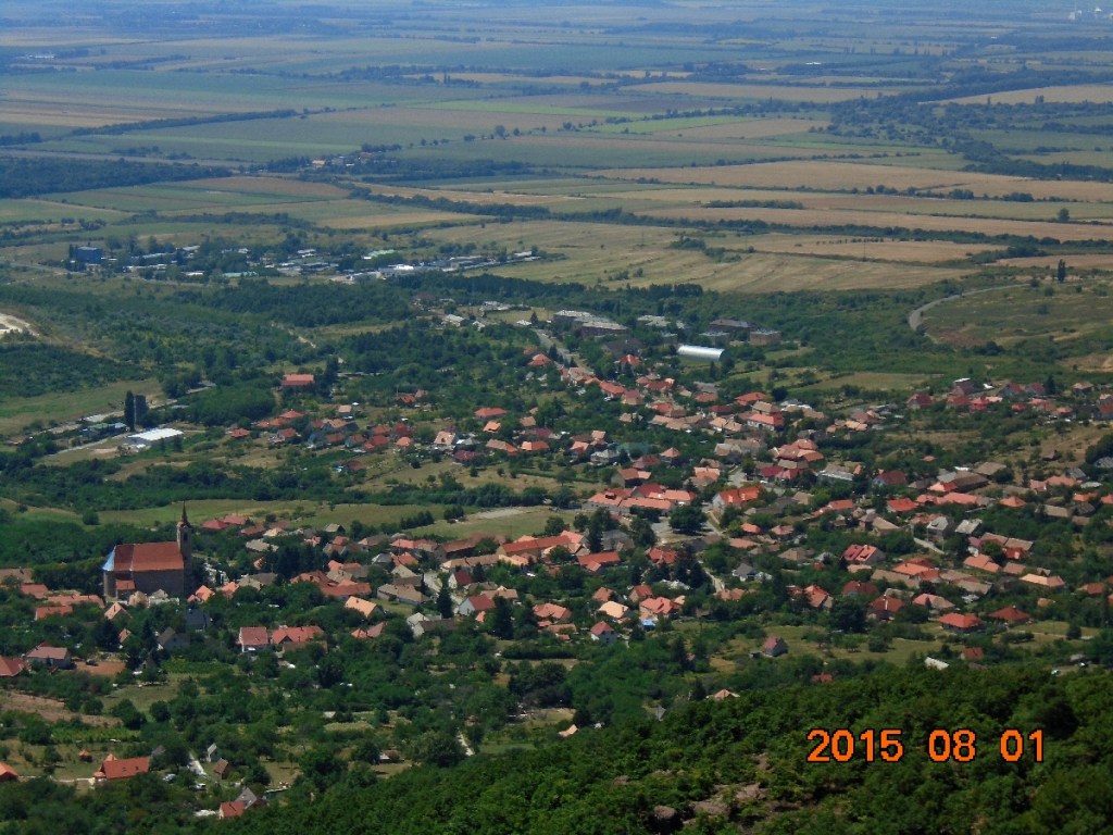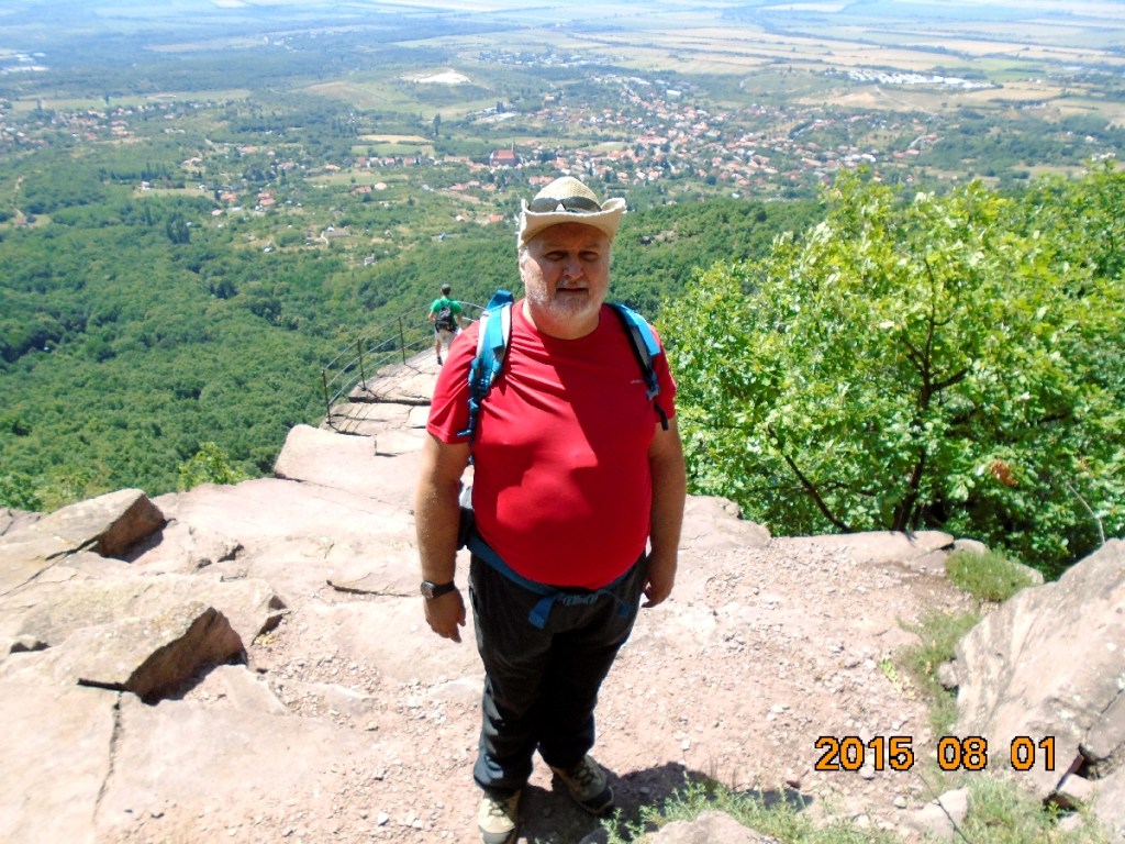 Itt egy olyan geoláda van, amit ebben az életben soha sem fogunk tudni megtalálni, ugyanis leginkább csak kötéltechnikával, de mindenképpen sziklamászó gyakorlattal érhető el. Életkorunk és testi adottságaink miatt, meg sem próbálkozunk a kereséssel. Marad a látvány. Ez a hely, nálam bakancslistás volt, mindenképpen szerettem volna egyszer eljutni ide. A ládaoldalra pedig teszünk egy Egyéb logot, kifejezve sajnálkozásunkat, hogy a hozzánk hasonló nyomoroncok nem találhatják meg a geoládát. A fák közül kilépve, máris lélegzetelállító látványban van részünk. Alant Cserkút és környéke, a Mecsekalja látható madártávlatból.