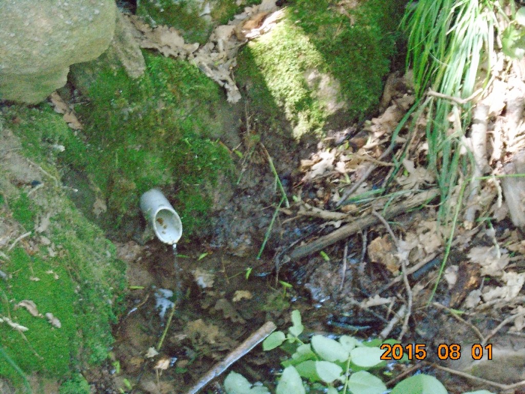 Mégse menjünk már haza találat nélkül, ha már ilyen messzire eljöttünk! A forrás csak pár lépés a kereszteződéstől és nagy csalódás. A foglalást és a nevét jelző kőtömb összetörve, darabokban van a kivezető cső fölé halmozva. A vízhozam gyér és valahogyan nem csábít ivásra.