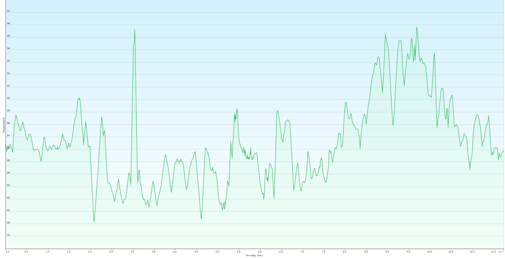 Átlagsebesség: 1,7 km/h (mozgásban 2,8 km/h)