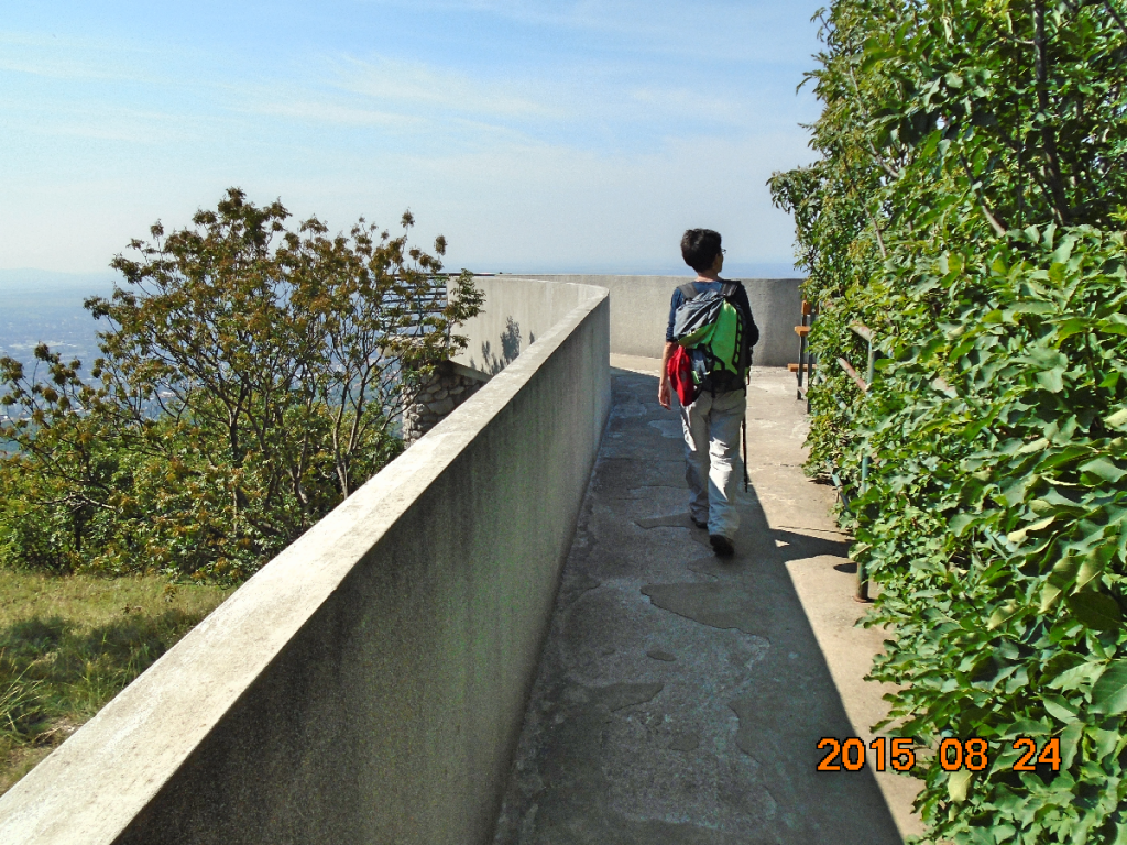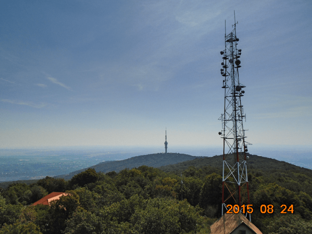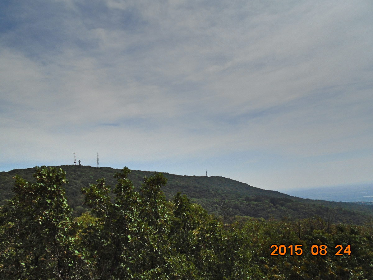 Ismét fenséges látványban van részünk. Csak a sok antenna hat zavarólag. De mit csináljunk! A rádiómérnökök is a hegytetőt szeretik, mint a kilátókat építők. Ez már csak ilyen világ! Az viszont nagyon jó, hogy munkanapon jöttünk, mert a hétvégén néha már zavaróan sok embernek, nyoma sincs. Csak hébe-hóba találkozunk valakivel, így zavartalanul élvezhetjük a környezetet. Miután kigyönyörködtük magunkat, leereszkedünk a kilátó alá, hogy megkeressük a geoládát. Egy kisebb kőfal mögött bukkanunk rá. Ugyan a GPS 10 méterrel odébb mutat, de a leírás alapján megtalálható. Ebben a sok antennás, elektorszmogos környezetben, természetes, hogy a GPS nem pontos. Gondos visszarejtés után, megyünk is tovább.