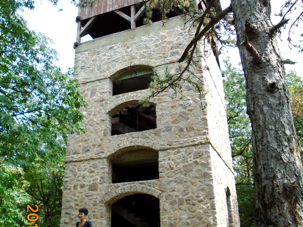 Mivel mai kirándulásunk kezdőpontja messze van a pécsi vasútállomástól, így a helyi közlekedést választjuk és busszal utazunk fel a Misina-tetőre, ahol a TV-torony aljában szállunk le a buszról. Őszintén szólva alig vártam már ezt a leszállást, mert a gyomrom igencsak felkeveredett a szerpentinen zötyögő buszban. Már csak azért sem értem a dolgot, mert ilyen még sosem fordult velem elő, hogy valamely közlekedési eszközön rám tört volna a hányinger. Még repülős koromban sem, bárhogyan is dobálták a légáramlatok a gépünket. Ahogy kinyílt a busz ajtaja, puskagolyóként rohanok a fák közzé, hogy könnyítsek a gyomromon. Szerencsére a friss levegő jótékonyan hat, így a Misina-tető berondítása elmarad. Az erőm viszont elhagyott, így a közelben, a fenyők alatt leülük egy padra, míg összeszedem magam. Vé ott toporog körülöttem. Szent meggyőződése, hogy csak kibúvót keresek a gyaloglás alól. Igaz, hogy reggel nehezen indultam el, de nagyon szeretem Pécset és környékét, ezért ki nem hagynám a mai utat semmi pénzért! Pár perc ücsörgés után összeszedem magam és nekivágunk az útnak. Így utólag végig gondolva, szerintem a nadrágom korca elszorította kissé az emésztőrendszerem a hosszú vonatúton ülve és a reggelim emésztése elakadt. Na, mindegy túl vagyok rajta, gyerünk hát!