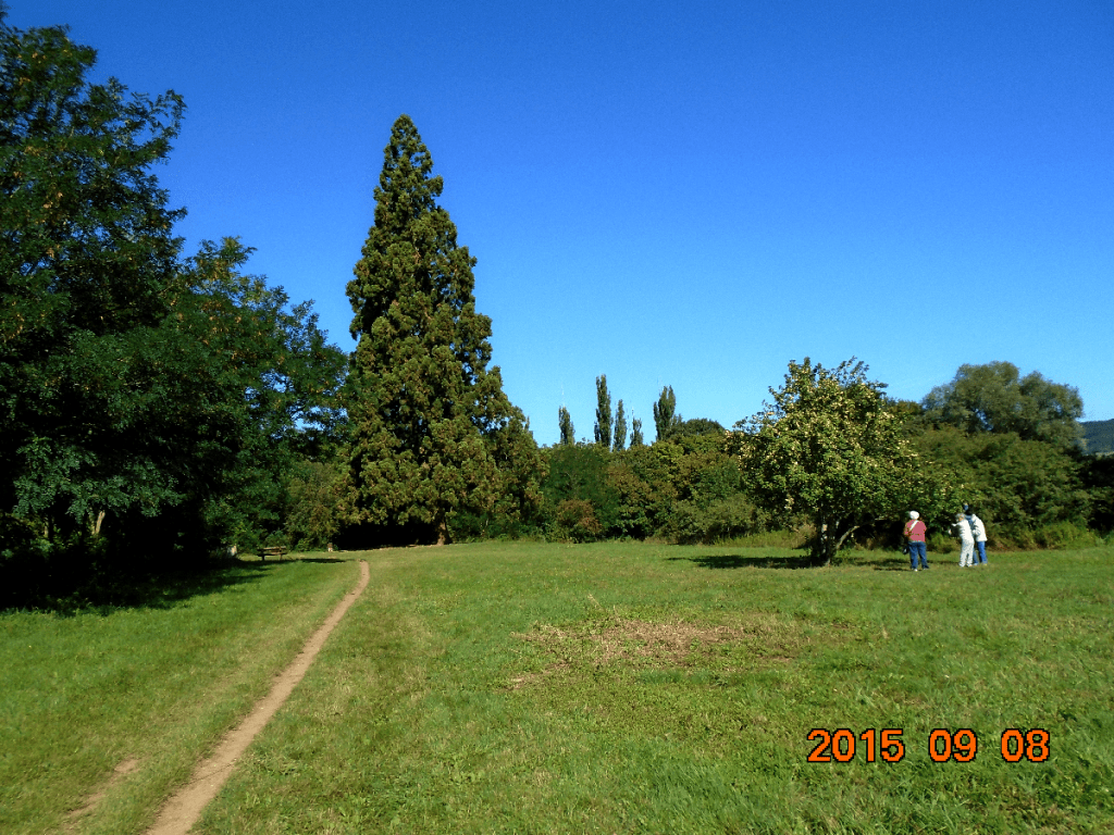 jelzésen indulunk a város északnyugati széle felé, ahol az első célpontunk, a mamutfenyők várnak ránk, kb. száz éve. Sajnos, csak most sikerült időt keríteni a meglátogatásukra.
