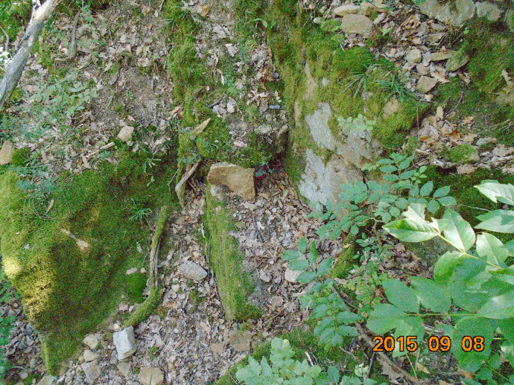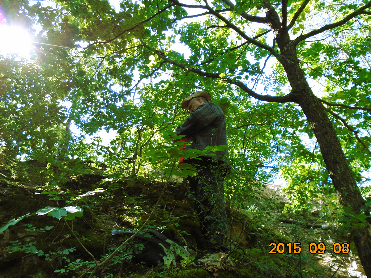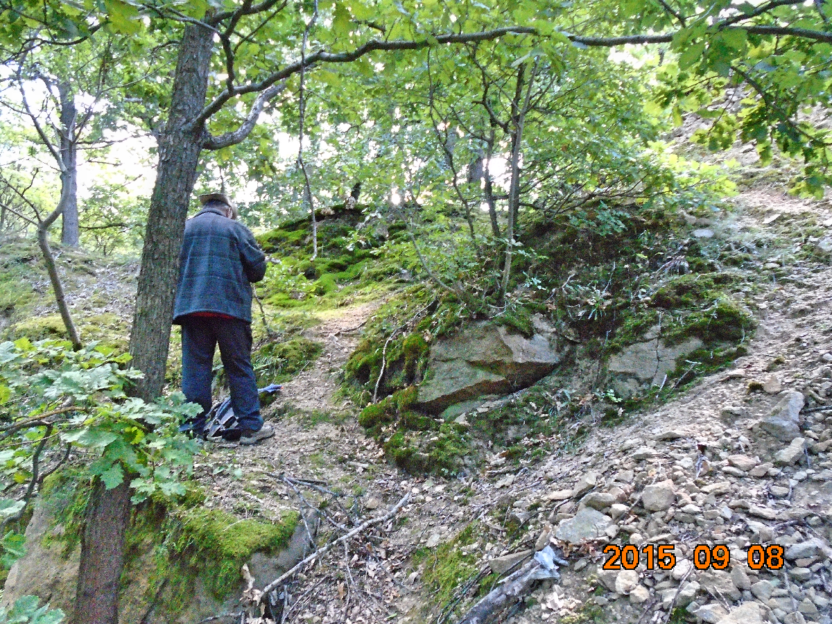 Visszarejtem a ládát, majd a webes logoláshoz látok az applikáción keresztül. Kicsit keresni kell a helyet, ahol van térerő. Némi mászással találok is egy alkalmas helyet, így megszületik a bejegyzésünk a weboldalon. Itt is vadregényes a táj. A természet lassan visszahódítja ezt a tájsebet. Meg kell kissé erőltetni a fantáziánkat, hogy a sziklák közzé belelássuk az egykori bányát.